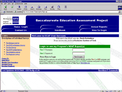home page (http://www.rit.edu/~beap/)