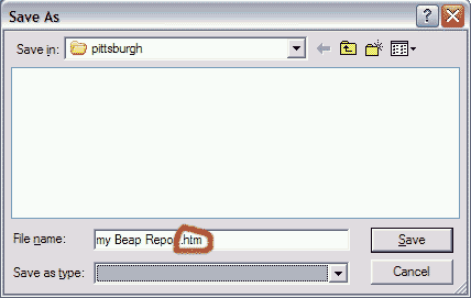 When the "save as" dialog appears, remember to give the file a name with an .htm